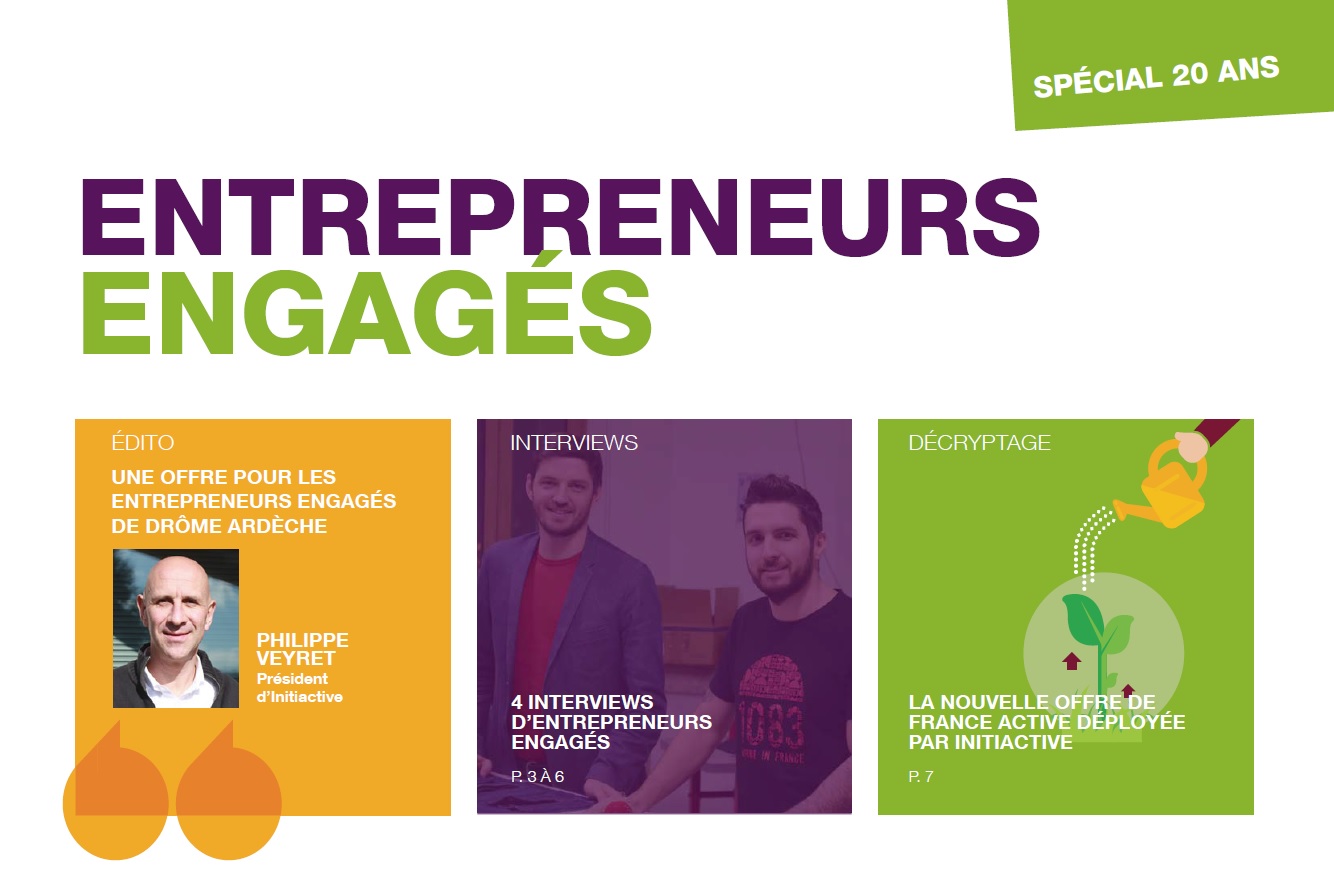 Nous éditons, à l’occasion de nos 20 ans, un magazine dressant le portrait de 4 entrepreneurs engagés du territoire, soutenus au démarrage ou dans des phases de développement de leur entreprise.