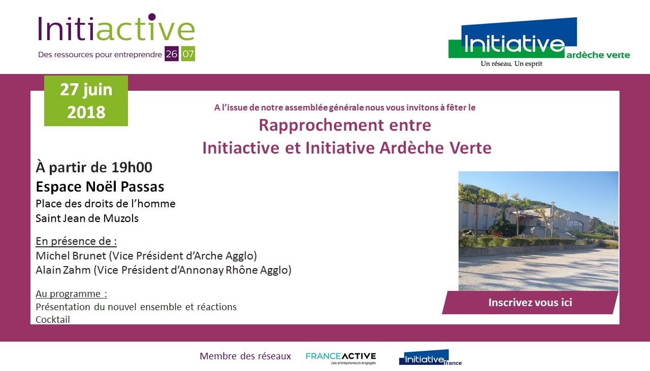 Suite à une sollicitation d’Initiative Ardèche Verte, les 2 associations travaillent sur un projet de rapprochement depuis le printemps 2017. Elles fusionnent et se regroupent sous la bannière « Initiactive 26.07 », tout en gardant au niveau local les locaux et la salariée dédiés au territoire de l’Ardèche Verte.