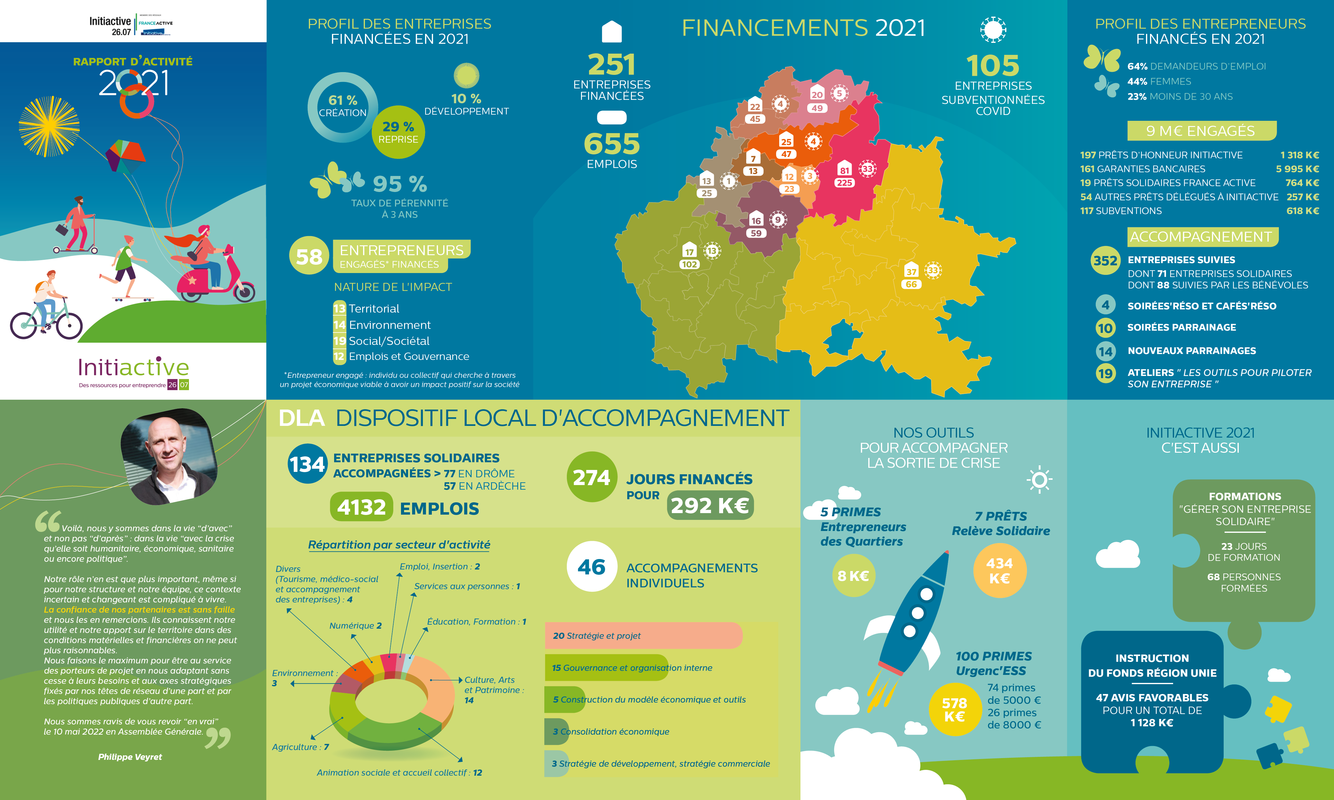 L’année 2021 a été exceptionnelle avec 251 entreprises financées en garantie et/ou prêts, 134 structures bénéficiaires du Dispositif Local d’Accompagnement et 105 entreprises bénéficiaires d’une prime de relance spécial COVID.